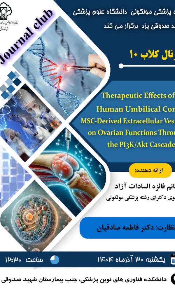 ژورنال کلاب (10) گروه پزشکی مولکولیرابط سایت دانشکده علوم و فنون نوین7 دی 1404گروه پزشکی مولکولی دانشکده علوم و فناوریهای نوین پزشکی برگزار میکند: ژورنال کلاب ... اطلاعات بیشتر